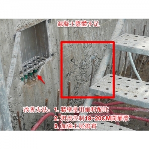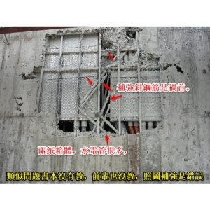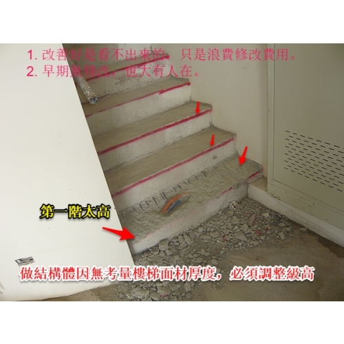 成果取代一切: 灌漿拆模後,為何會有蜂窩現象,二樓發生的事,三樓會不會重複發生。問題出在何處?如何改善。 照鋼筋標準圖補強水電箱開孔,問題更多? 樓梯階梯級高,配合地板裝修材料厚度如何修正? 空調如何預留套管,才不會影響結構,如何事先確認內部裝修,空調排水管高度要事先確認,
