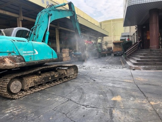 4、可以工作的時間只有四天第五天要灌漿。也就是打石挖除兩天,整平綁鋼筋含模板工,水溝角鐵電銲工兩天。工期可以說是非常的緊迫而且沒有退路。因為再來就是除夕了沒有人願意出來工作了,也沒辦法供應混凝土也沒辦法灌漿。如果開天窗了將影響整個工廠的運作