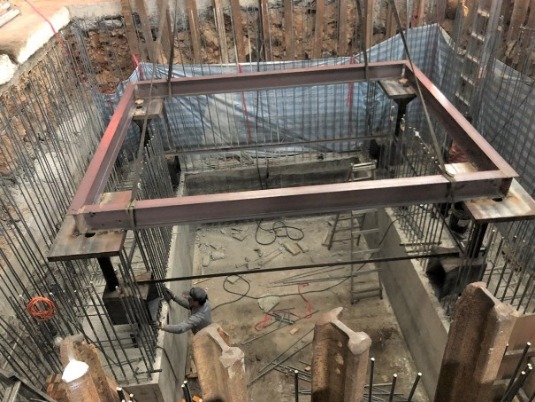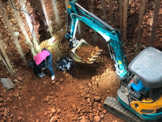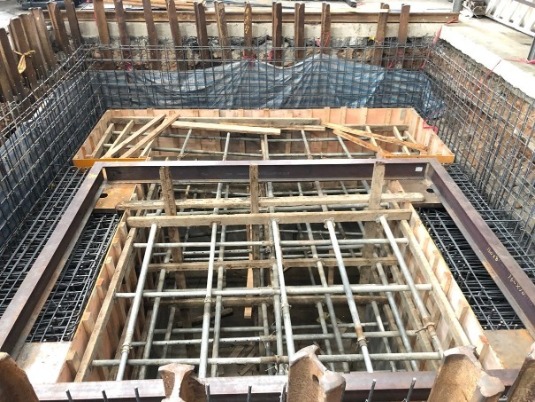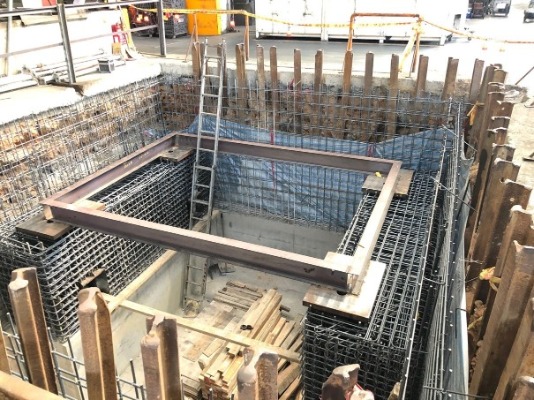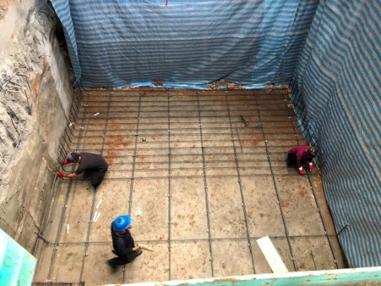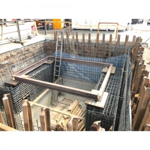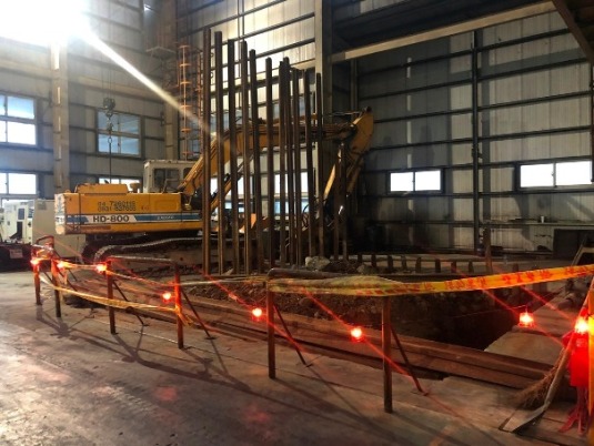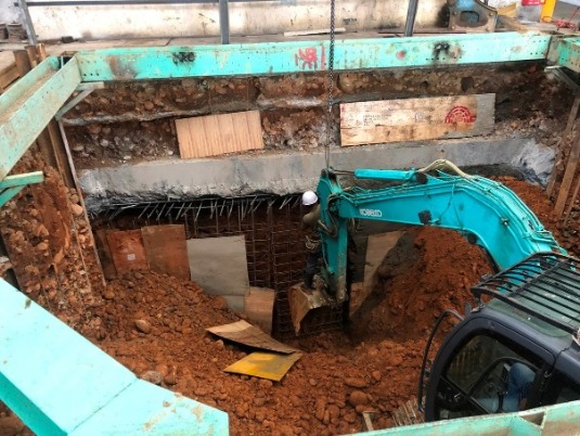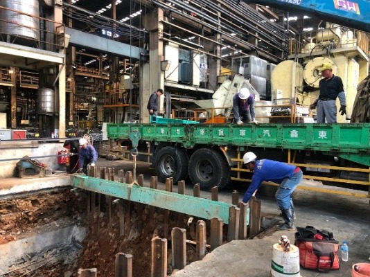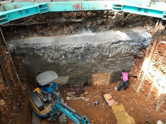 原基礎下方因地層潮濕改用 檔土牆施工法