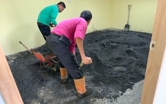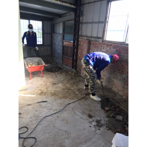 2. 依墨線厚度,將太高之地坪打除,計算水泥砂用量。